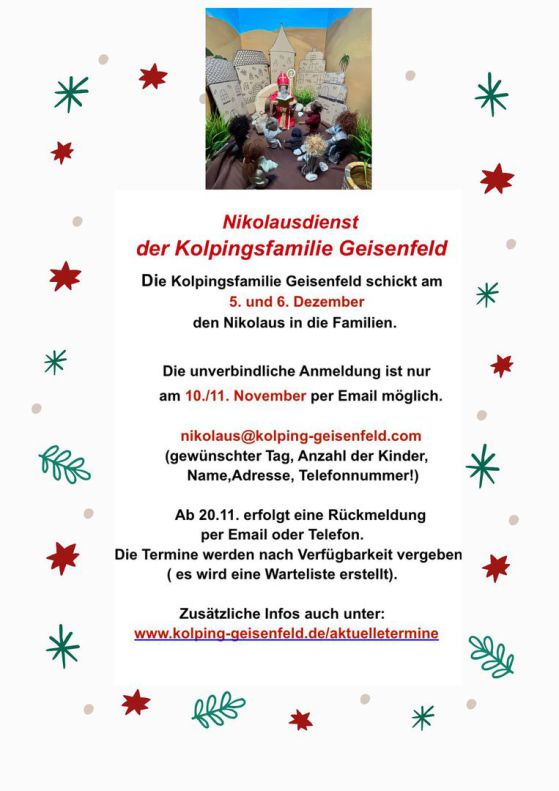 Anmeldung bitte per Email an nikolaus@kolping-geisenfeld.com